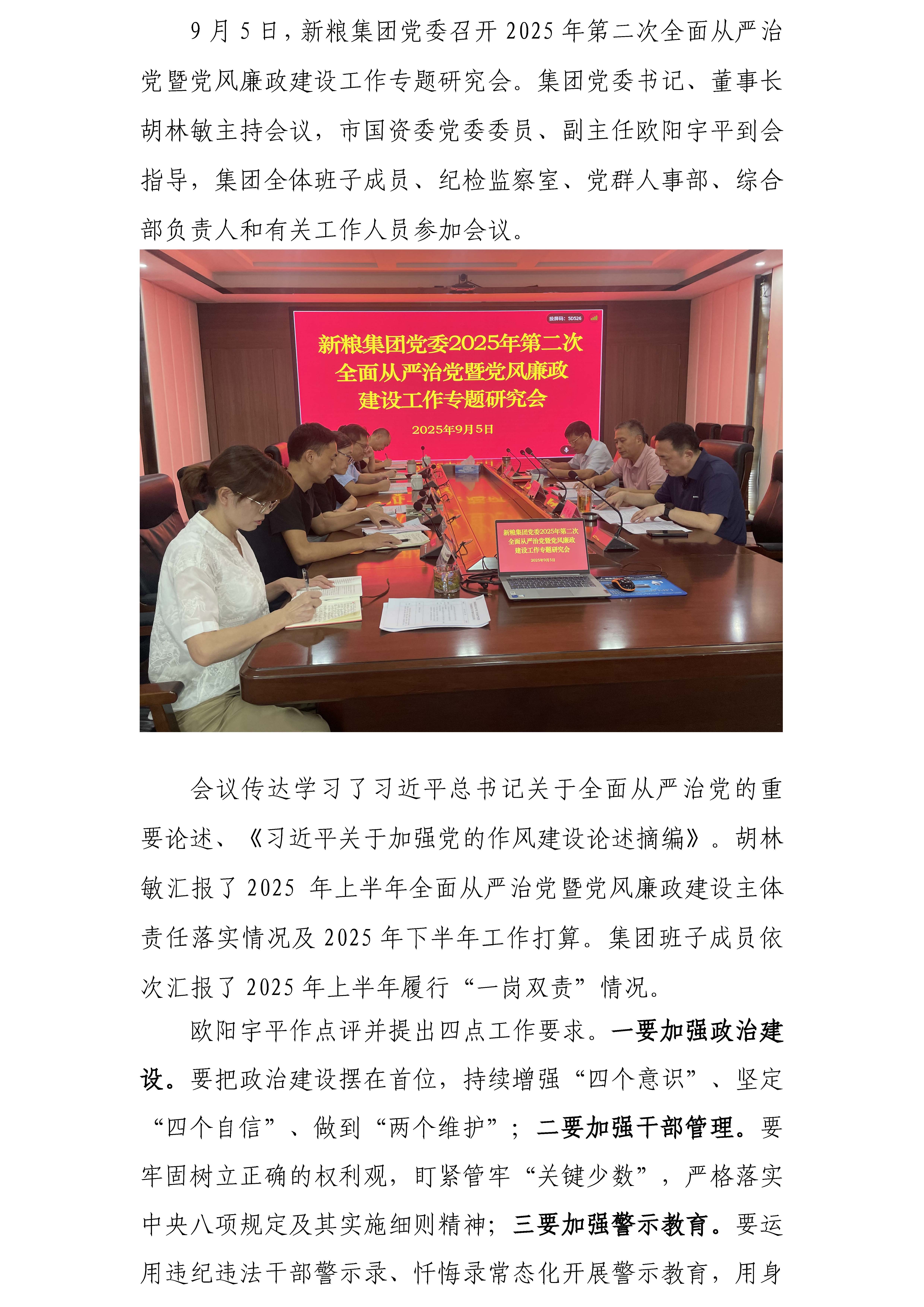 新糧集團黨委2025年第二次全面從嚴治黨暨黨風(fēng)廉政建設(shè)工作專題研究會
